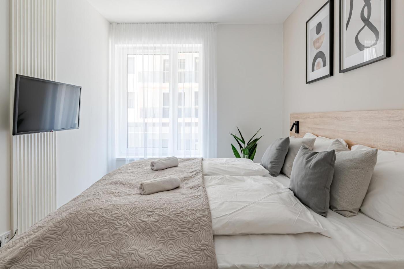 One-Bedroom Apartment. The air-conditioned apartment features 1 bedroom, 1 bathroom and a kitchen. The apartments kitchen is available for cooking and storing food. This apartment has a washing machine, heating, a flat-screen TV and a balcony. The unit offers 2 beds.
